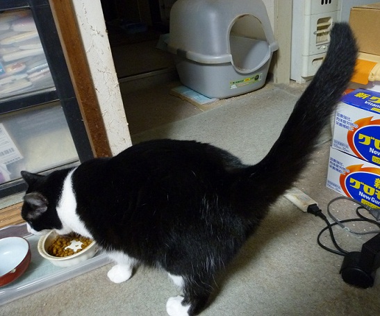 で、こんな場所でカリカリを食べたり水を飲んだり・・・