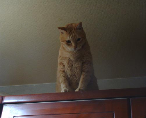 先月だったか、一度タンスの上に上がっていたけど、何とか降りて来たので・・・大丈夫だろうと放っておいたら・・・夜のゴハンタイムにも降りて来ない。
