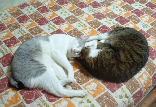 こんなに安心しきっているネコ達なのに、母はかなり必死だもんね(汗)