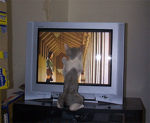 最近、2人してテレビの裏側に入り込んではテレビ台の中のDVDプレーヤーの横から顔を出してくれる。