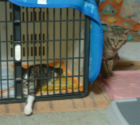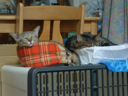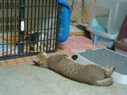 ヤマトくん、結局ケージの中をグチャグチャにして、オネムになっている。