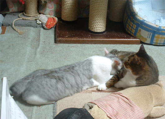 よく2人で食器棚の上で寝てるけど、サヤはオッパイを吸ったりはしない。