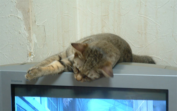 テレビの上だろうが、スキャナの上だろうが、椅子の上だろうが...何処でもオッケー