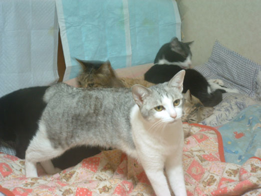 これだけネコが居ると、砂や毛や...結構大変だ(涙)