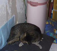 大人ネコなら、お尻しか入らない代物...小動物用だもんね(笑)