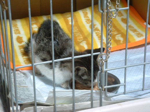 ケージに入れ、周りを囲ったけど泣く泣く。