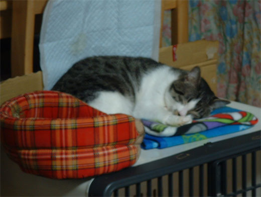 ヤマトくん、1人で好きな場所で寝たり、兄ちゃん達にくっついて寝たり...好きに暮らしている。