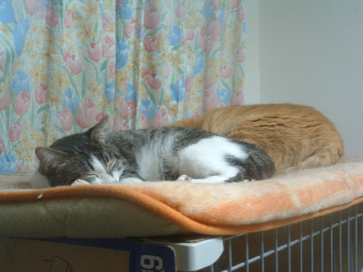 夜9時には、ヤマトをケージから出してやるんだけど...食後なので他の子達はみんな寝ていて、やっぱり今夜も誰も相手をしてくれなかった。