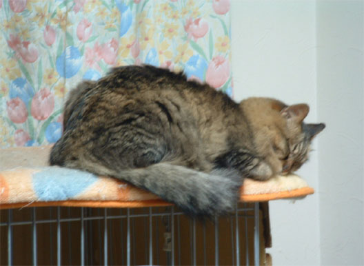 なので、天気が良い日には、出入りするスペースとケージの上がネコ達の絶好の場所になる。