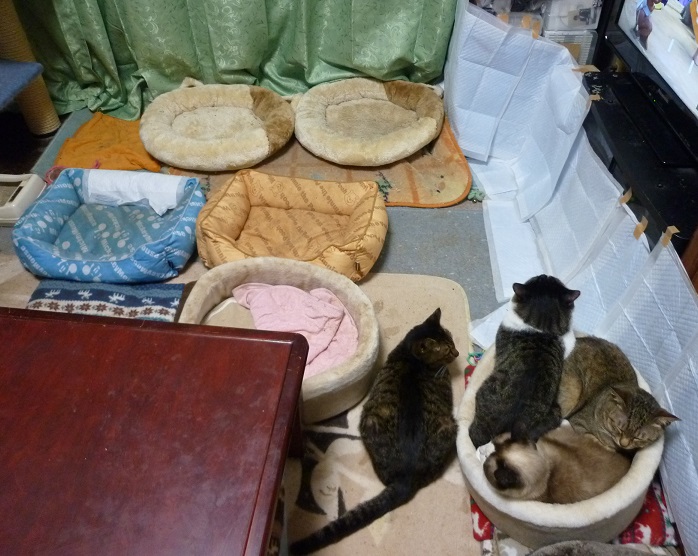 涼しい室内で、ネコ達は気持ち良く寝ていたようだ。