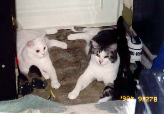 コロちゃん(右)、今は亡きメ子(メイ)と前に住んでたアパートの玄関にて。