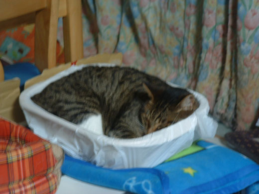 大きなネコベッドに入ったままのネコちゃんだった。