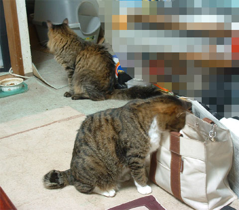 チビが気になってるのは、タバコ入れに付いてる鈴かな~~~