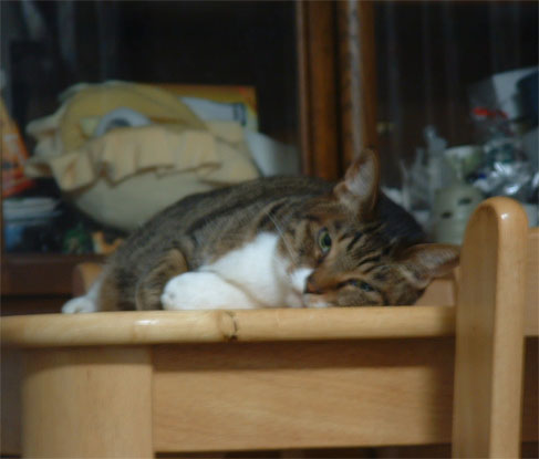 黒い毛だったし、コタツ机の上だったから..ロビンかな?