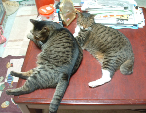 でも、子ネコが大好きで、面倒を見たいのか..ヤマトのケージの前によく転がっている(笑)