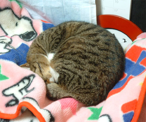 隔週の点滴だと、次の予定は火曜なんだけど...チビが何だか元気がないので今日連れて行きたかったのに、あまりに気持ち良く寝てるので行けず(涙)