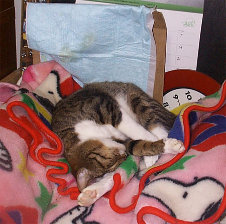 チビ爆睡..でも、後にあるのはロビン用のシッコガードだよ。
