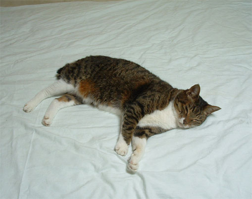 アトムが悪さをしたので怒って、ふとベッドを見たら...チビだけが寝ていたんだけど..敷いてある小さな布団の一部がまくってある。