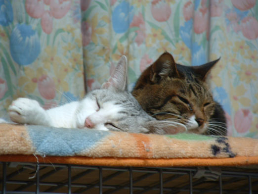 ネコ達とベッドで寝ていても、暑い...