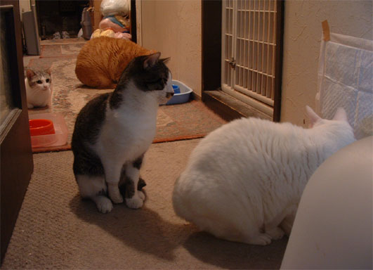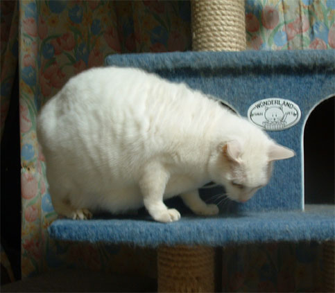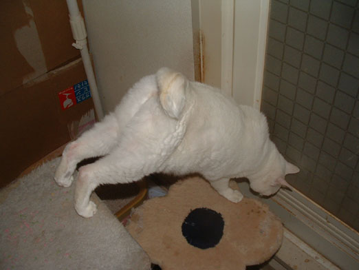 ウロウロして、カリカリを食べたり、タワーで爪を研いだり...