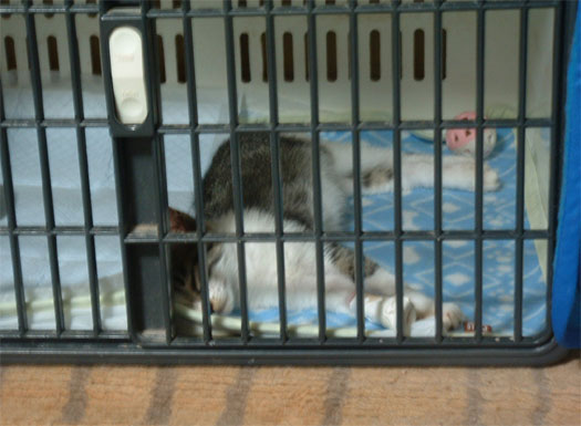 パンは寝ていたけど、起こしてキャリーに入ってもらった。