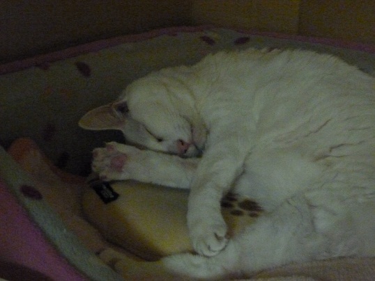 押入れ上段のネコベッドで、いつも3匹ガンガンに詰め込んで寝ているアトム、ポロン、ヤマトの男子達も今夜はあちこちで寝ている。