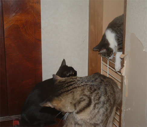相手が子ネコなので、大人ネコ達は適当にあしらっていた。