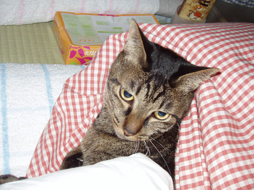 まだ薄いキルトの布団1枚だけど、ネコ達が集まってくれるから暖かいわ(笑)