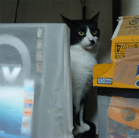 チビは何回か強制給餌したんだけど、もう1回...と思ったら、テレビの裏に引っ込んでしまった(笑)