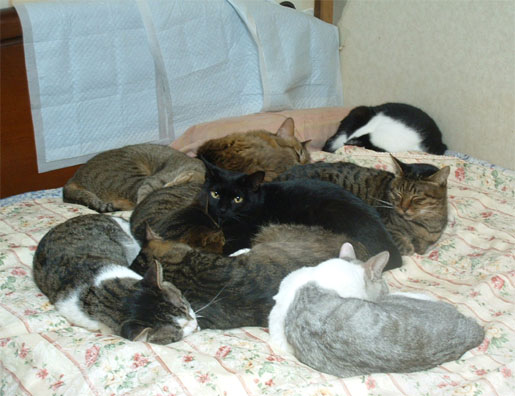 PCに向っていると、私のベッドの上に11匹...