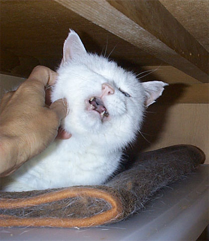 点滴の後を揉むと怒って噛み付く(これは、いつもの事)